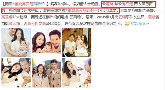 日前,就已经有知情人爆料董璇和高云翔两人确已于今年5月离婚,而且离婚方式相当新颖,高云翔并未出席,而是远在澳洲视频通话“云离婚”。
