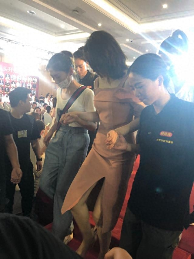 董璇脚踩恨天高,走路不大方便,下楼梯时,有“左右护法”贴心搀扶,董璇也小心翼翼,好似害怕一不小心走光,步子迈的非常小,看起来十分优雅。