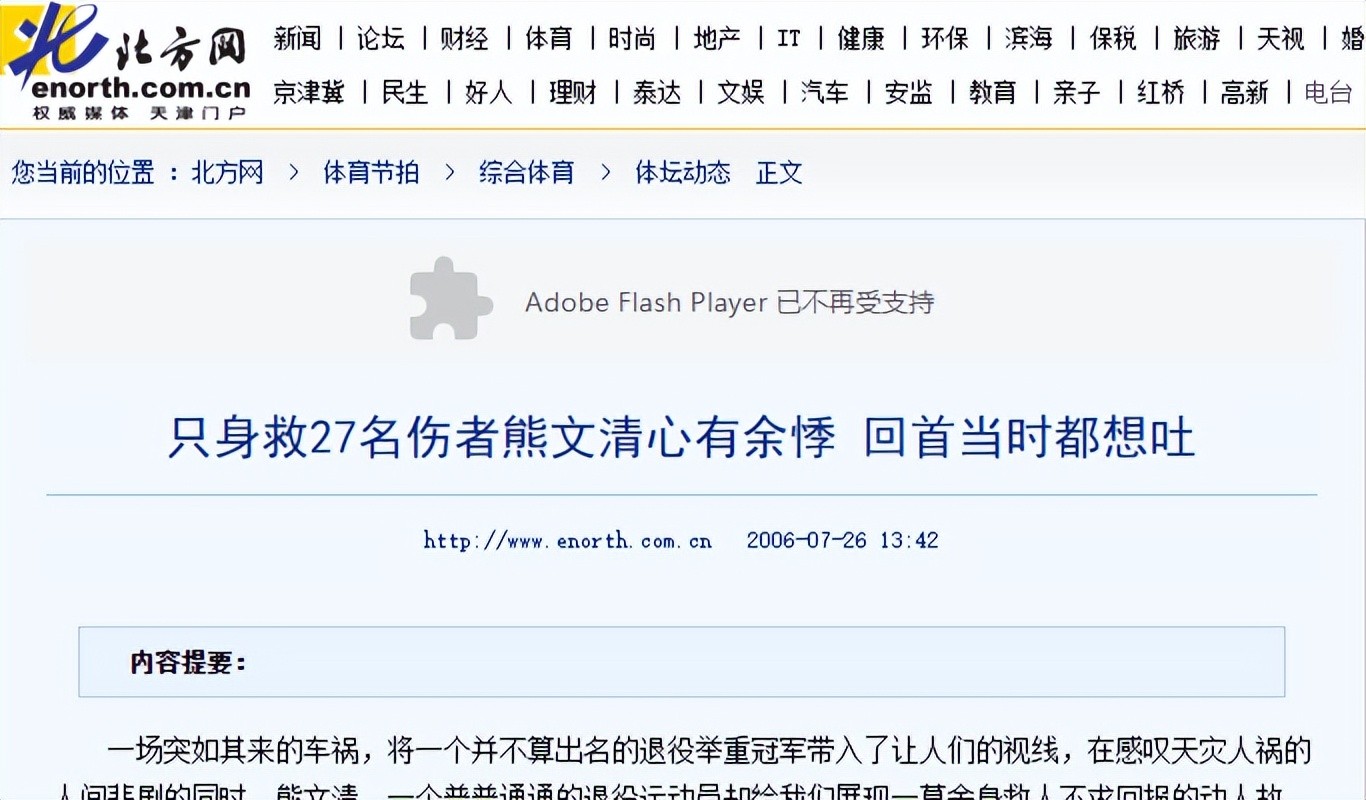 只身救27名伤者熊文清心有余悸 回首当时都想吐-冠军-北方网