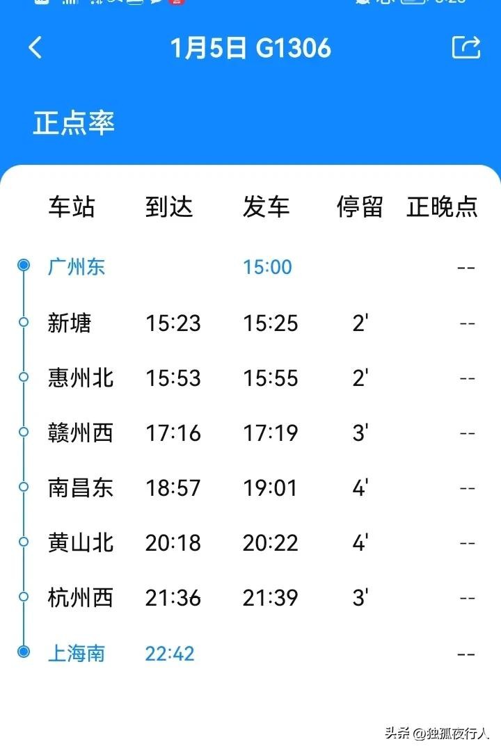 广州东站首开跨局高铁,G1306广州东至上海南,用时7小时42分