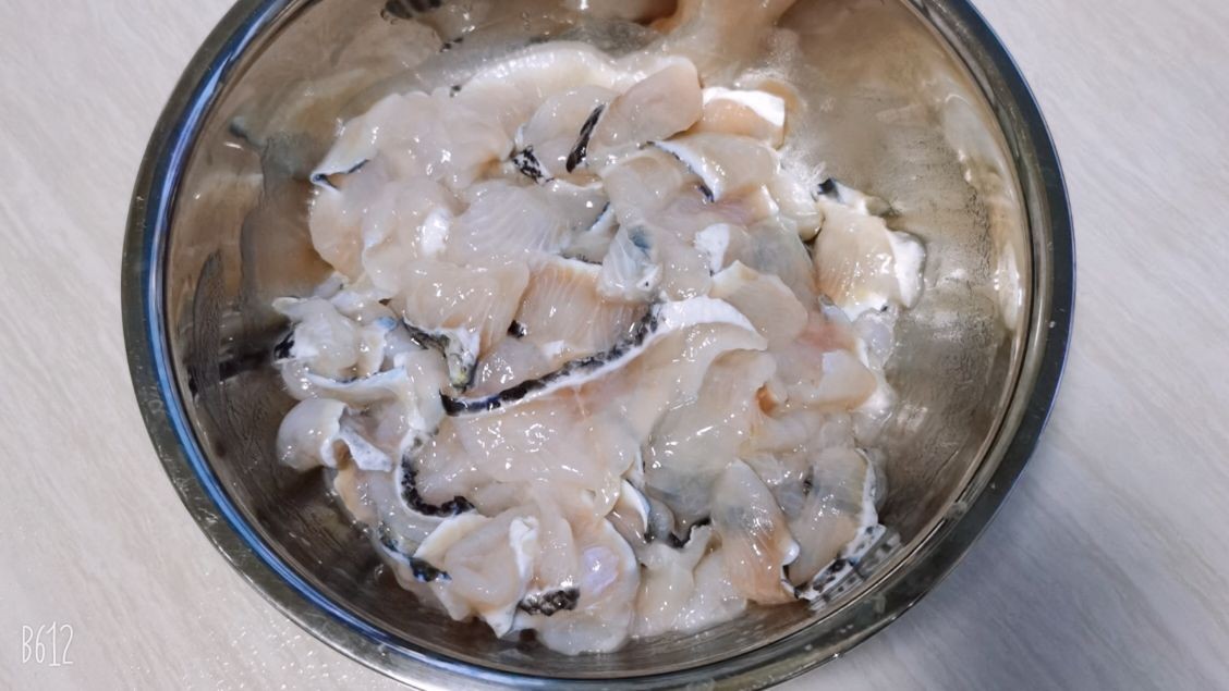 1,准备材料,新鲜的鱼片,使用的鱼类基本不受限制,我这次用的是黑鱼,去买鱼的时候,告诉商家要做酸菜鱼片,一般商家都会免费切片的。