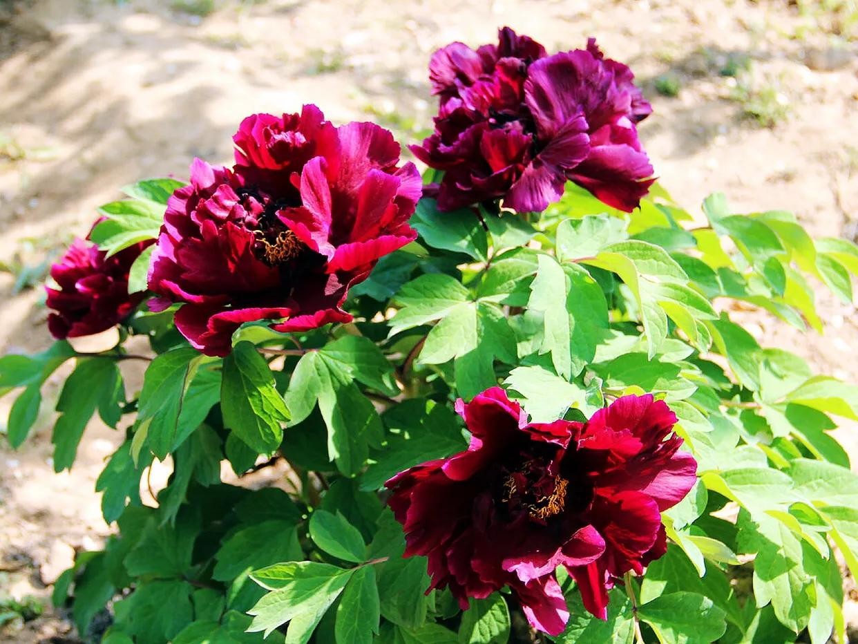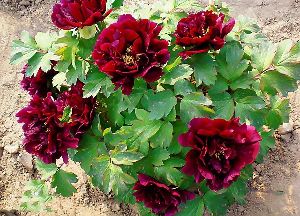 产地分布和生长环境:黑牡丹原产于中国。喜凉恶热,宜燥惧湿,可耐-30度C的低温,,在年平均相对湿度45%左右的地区可以正常生长。喜光,亦稍耐荫。要求疏松、肥沃、排水良好的中性壤土或砂壤土,忌粘重土壤或低温处栽植。花期4-5月。多采用嫁接方式进行繁殖,因为与芍药同属芍药属,多选用芍药作为砧木。