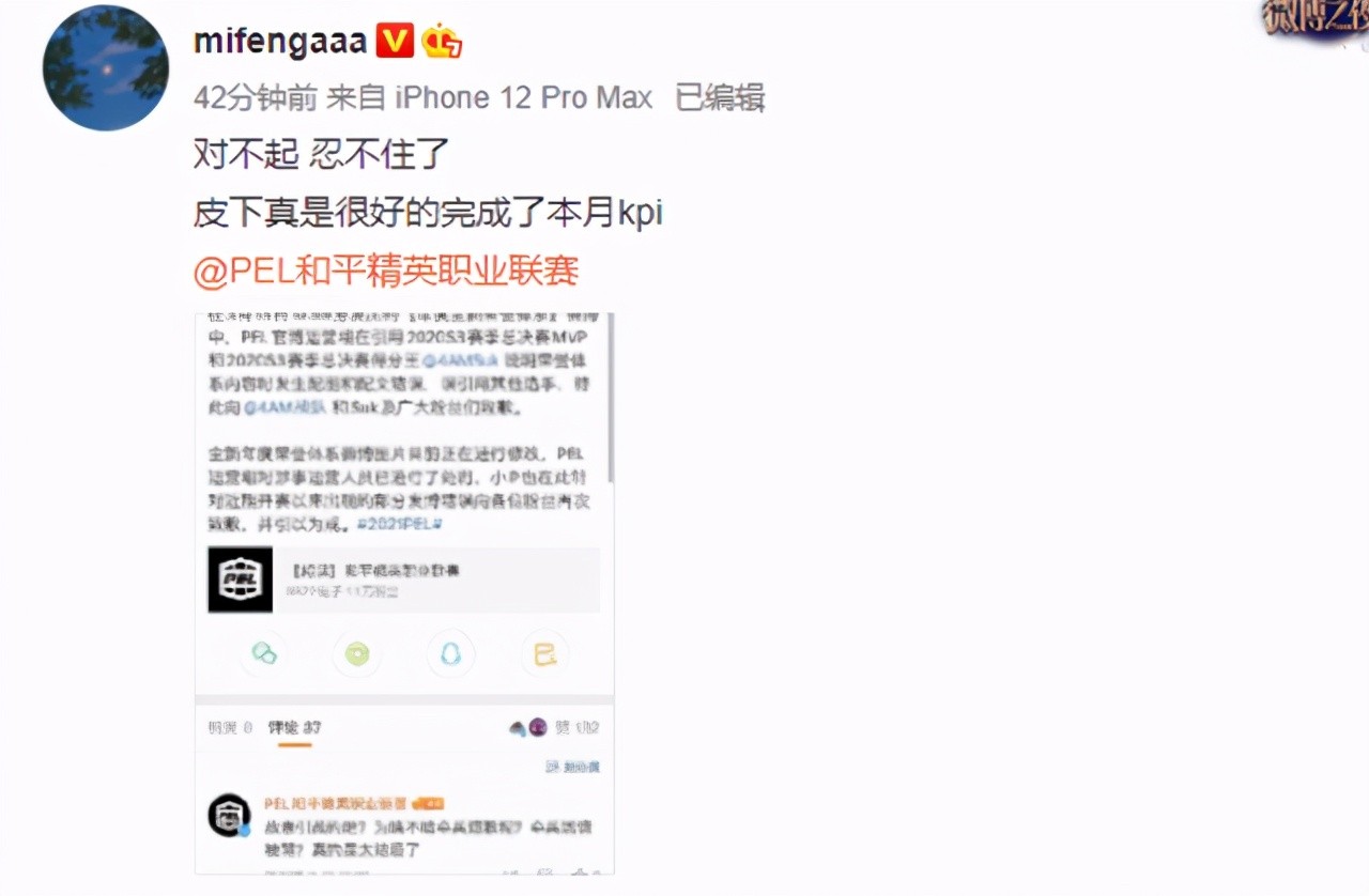 这次是官微掉了皮,大家才发现他们会偷偷换小号,带节奏。可见这不是第一次这样做了,战队和选手的粉丝经常因为pel的态度而开撕,官微在其中应该发挥了不少作用。