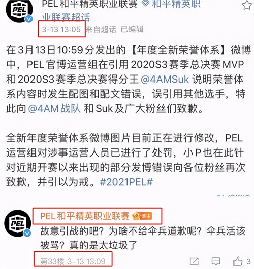 这两支战队的粉丝都不少,也不愿意轻易放过这件事。眼见事情越来越脱离掌控,pel官微只好出面道歉承认错误,但是,他们却做了一个举动,蜜蜂仔忍不住挂出了图片,嘲笑官微很好地完成了这个月的kpi。