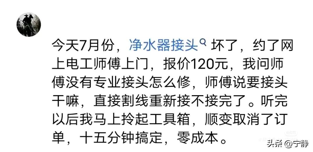 咱也不懂,都得听师傅的。有时候人家三两下就搞定了,咱心甘情愿掏钱,心服口服。