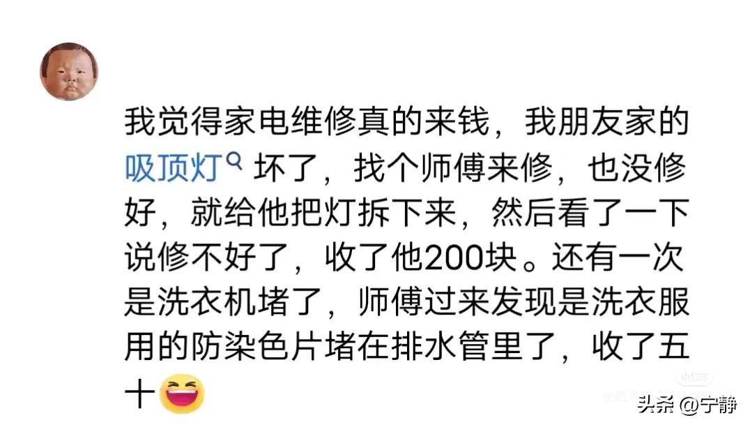 现在各种物品价格透明度高,人家维修人员还是得有两把刷子的,否则谁会傻傻把钱送上?