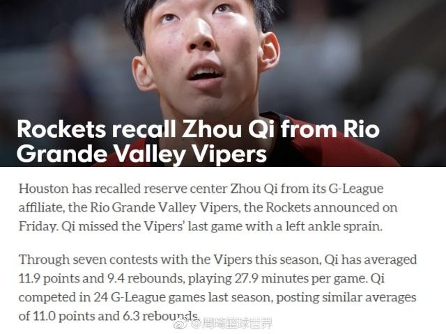 休斯顿火箭今天官方宣布,召回一直在发展联盟打球的周琦。乍看之下,对于最近一直处境不佳的周琦来说,应该算得上是个好消息。可联想他之前刚刚扭伤了脚踝,很快就有人怀疑周琦是不是回火箭治伤来的?