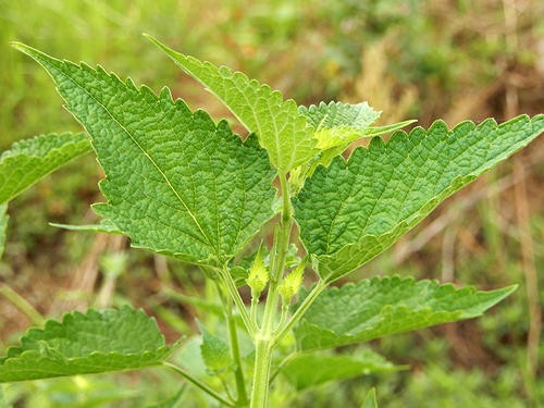 为多年生草本,茎直立,高度在0.5-1.5米之间,茎四棱形,粗7-8毫米,上部有短细毛,下部无毛,上部有发育的分枝;单叶对生,叶片心状卵形或长圆状披针形,长4-11公分,宽3-7公分,在茎上向上逐渐变小,叶片先端尾状渐尖,基部心形,叶边有粗齿,纸质,表面深绿色,背面稍淡绿色,叶柄长1-3公分;