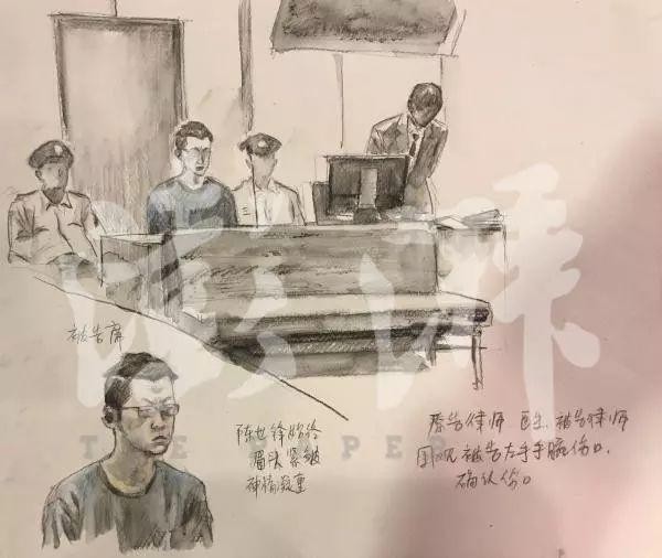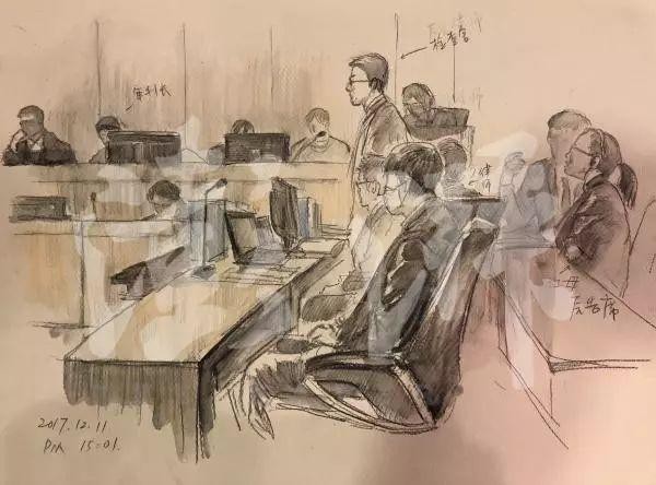 11日下午庭审现场速写。澎湃新闻记者李媛 图