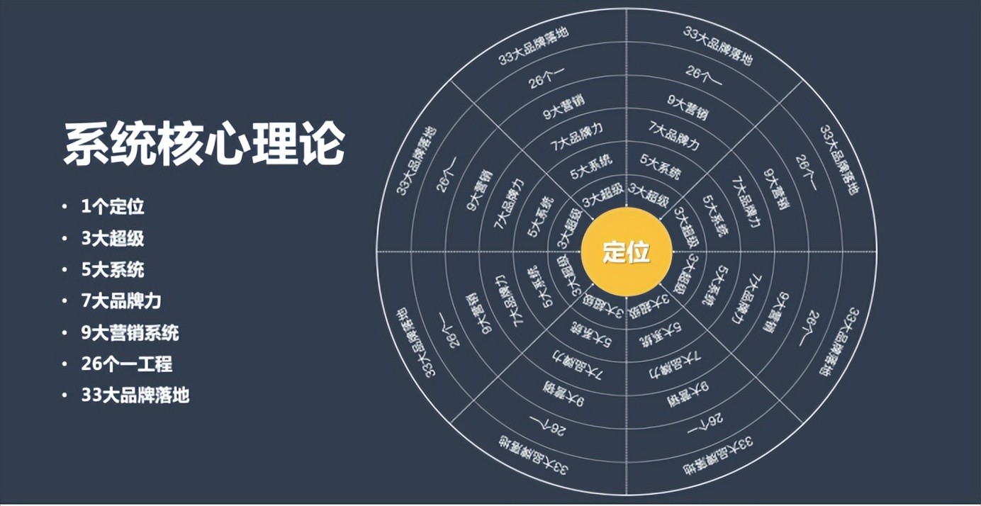 很多企业在寻找到市场的“占位点”就已经困难重重,系统化落地就更加困难了,它不仅仅是需要花时间去调研去思考,更需要重构企业内部与“占位点”的匹配度,更需要深度落地执行。这就是为什么要建立大定位理论的原因。系统化构建品牌中的每一个要素,让其环环相扣,紧密关联,让任何一个品牌要素的转变都能成为重要的转折点,也大大增加了品牌成功的几率。