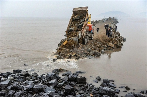 2013年1月29日,龙港市海涂围垦堤坝即将完工。