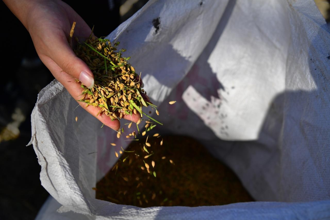 2018年9月27日,龙港新城农业园成功种植袁隆平院士研发的海水稻收割现场。