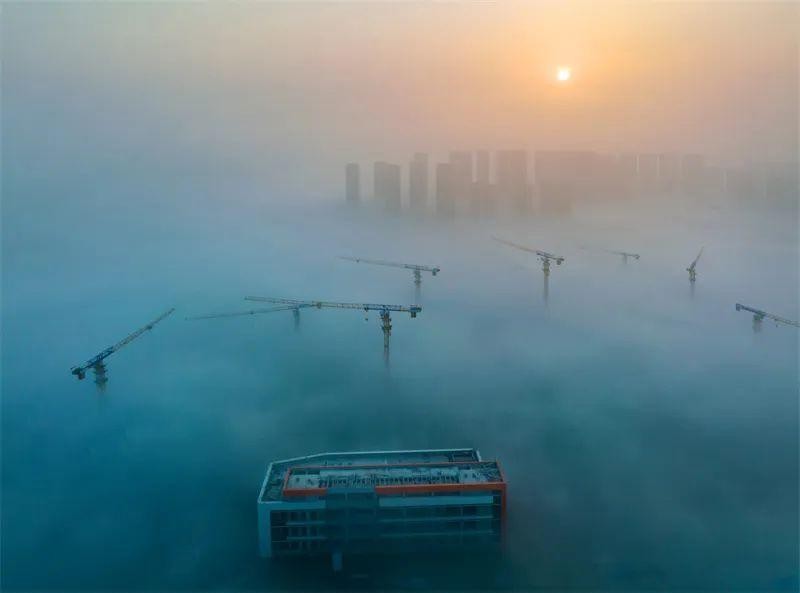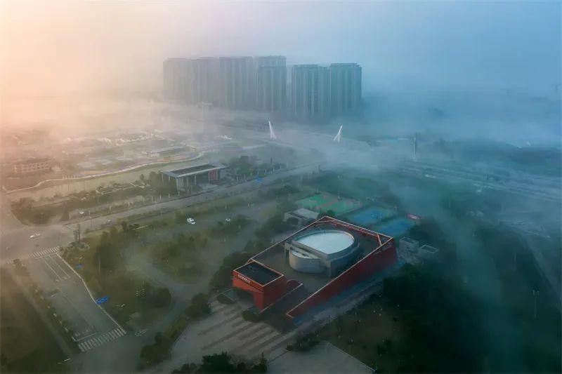 2022年3月14日,晨雾笼罩下的龙港新城。