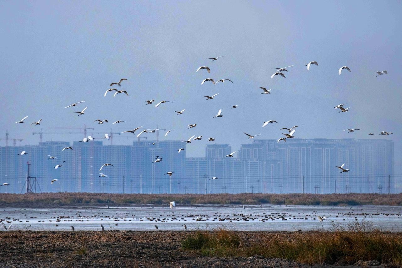 站在龙港新城的防波堤上,海风清徐,放眼向外望去,远处高楼林立,一片繁荣景象尽收眼底。近处河湖交融,绿波荡漾,成群的白鹭展翅飞翔,“落霞与孤鹜齐飞,秋水共长天一色”的场景在龙港新城成为常态。