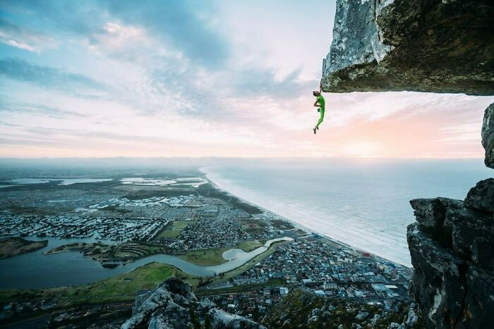 马特布什在“人间天堂”的第一次自由攀登中做了5个引体向上。米奇·威斯威德尔摄