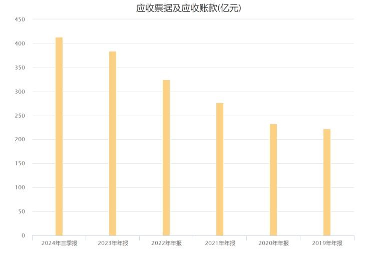 上图是海康近5年的应收款,一年比一年高,今年三季报已经高达413亿。