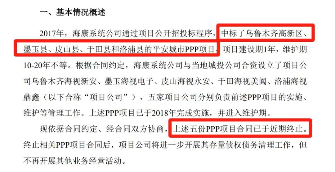 公告内容同样是海康2017年中标了新疆的5个地区的PPP项目,建设期也是1年,然后也签订了10~20年的维护期合同,至少要2028年才到期。