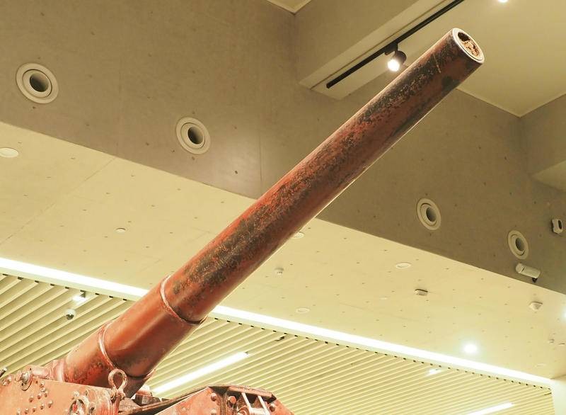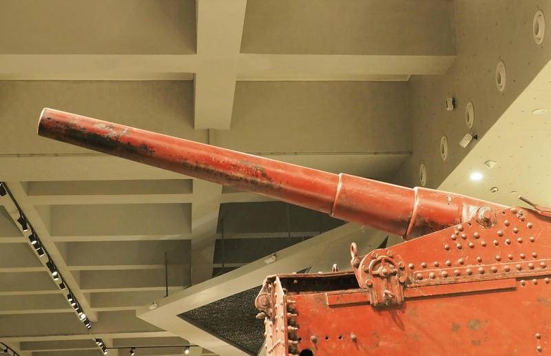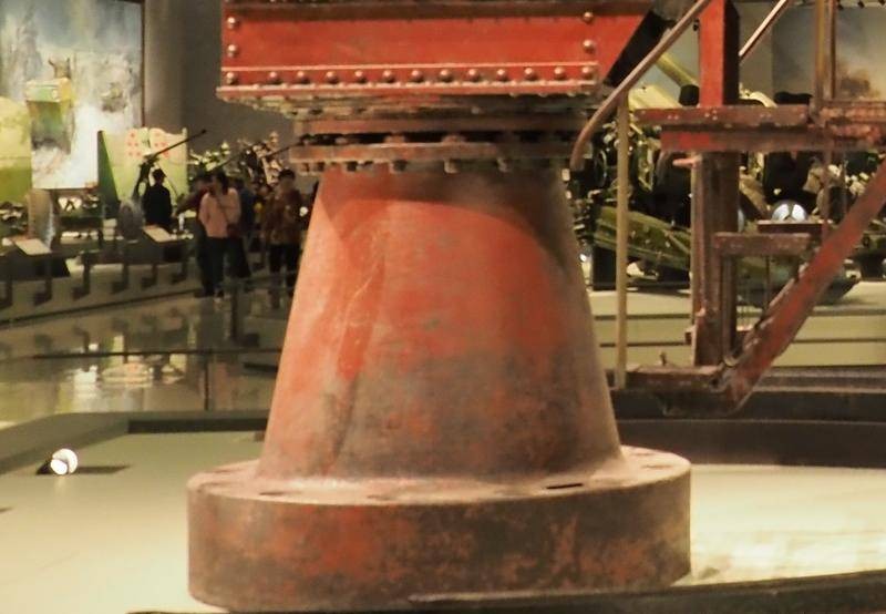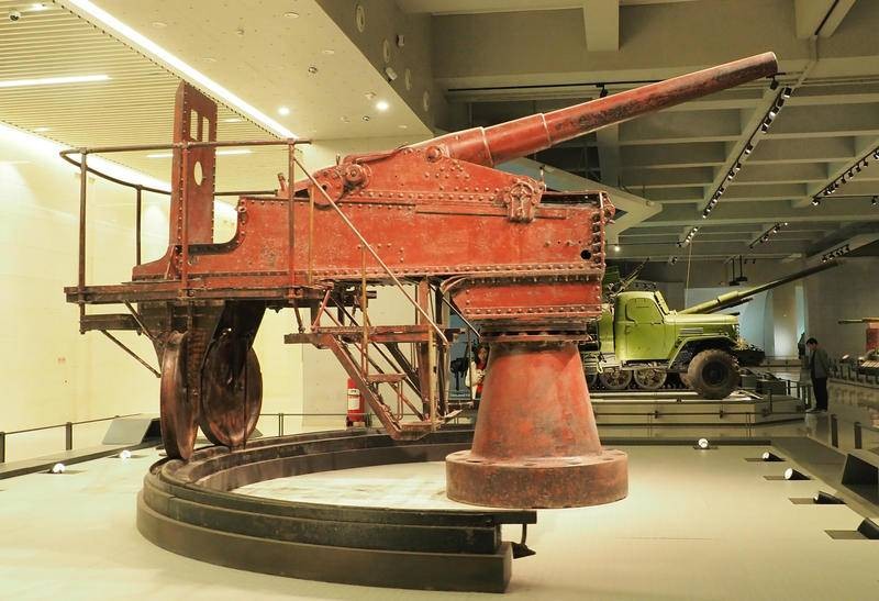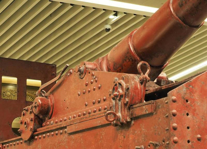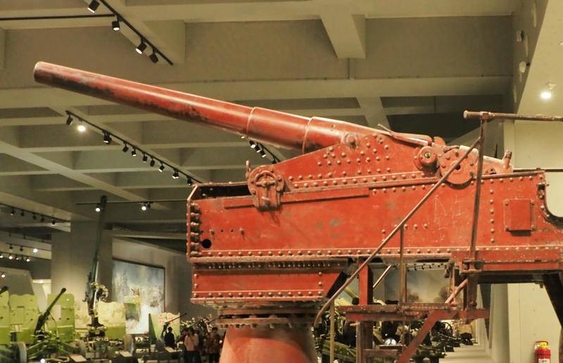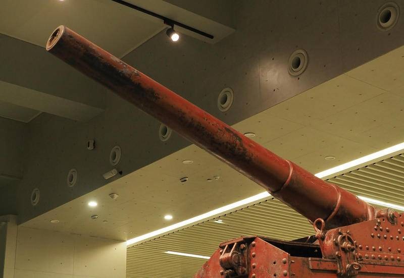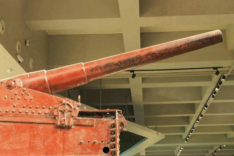 该要塞炮如何装弹呢?照片分析该炮没有炮栓,也没有装填炮弹的托架,可能属于装添火药包加弹丸的直射炮,炮架平台后侧立有挡焰板。