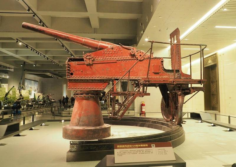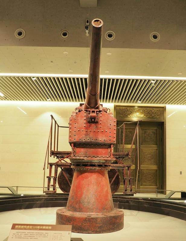 这门克虏伯要塞炮于1959年从广西运往北京中国人民革命军事博物馆,目前这门被完整保留下来的克虏伯120毫米要塞炮收藏在军博馆新馆地下一层大型武器馆显著位置展示。该炮制造于1890年,广西金鸡山要塞也有克虏伯巨炮作为历史文物对外展示。