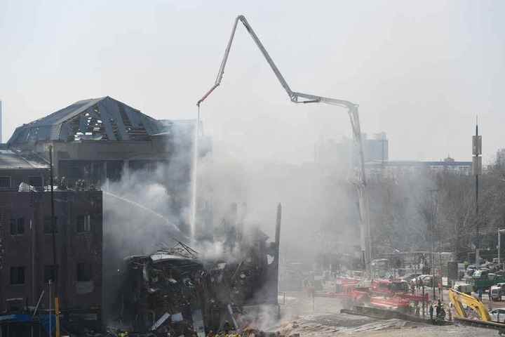 河北三河市燕郊镇燃爆事故救援现场,图源 新华社