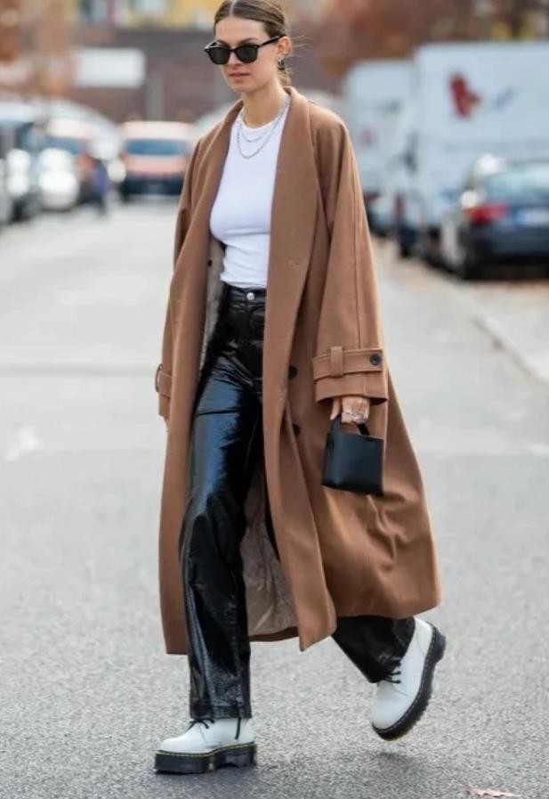 白色的马丁靴+驼色长大衣,真的太有范了。