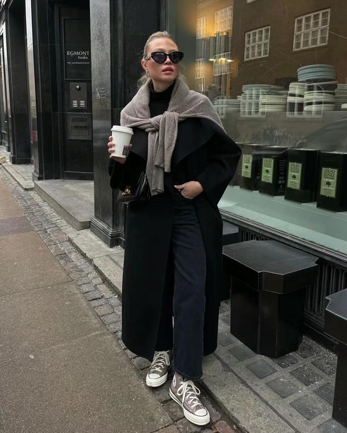 说到穿大衣配什么鞋子,我个人觉得运动鞋就是一个非常不错的选择,至少它休闲舒适,也不挑年龄和脚型。不管怎么搭配都是很时髦的。