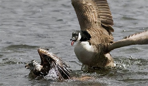 从这些角度看,鹅已经无愧于猛禽之称,可这依旧称不上它们的高光时刻。