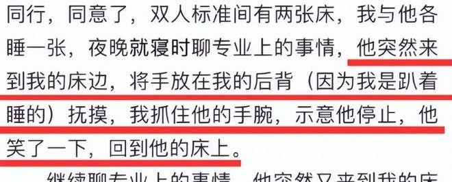 最近,作家李某发表了一篇长文,指控郭敬明对他进行了性骚扰。李某详细描述了郭敬明对他的背部摸摸和撩起短裤等行为。每次被制止后,郭敬明都带着笑容退后。然而,他并没有停止,李某表示,在拒绝之后,郭敬明说了许多下流无耻的话。其中一句话尤其经典:“能被四爷看上,是我的荣幸。”这真的让人难以评论。