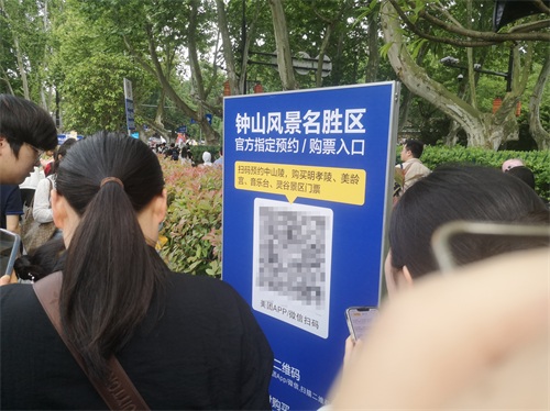 指示牌的旁边,会有工作人员提醒你,需要提前扫码付费,然后,才能去钟山风景区。