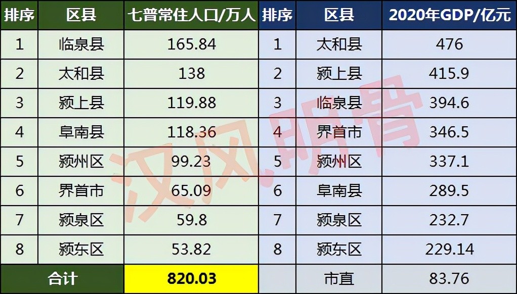 阜阳市8区县人口一览:太和县138万,颍东区53.82万