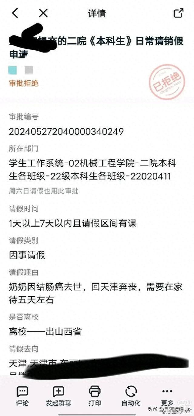 据说啊,这位学生一开始找到班主任和教学科,把情况一说,两位老师都表示理解,也爽快地同意了他的请假申请。可谁曾想,这申请单转到了学院老师李某某那儿,却遭遇了“滑铁卢”。李某某老师眉头一皱,认为学业为重,考试在即,便只批了三天假。这可把学生给整蒙了,心里那叫一个憋屈啊。