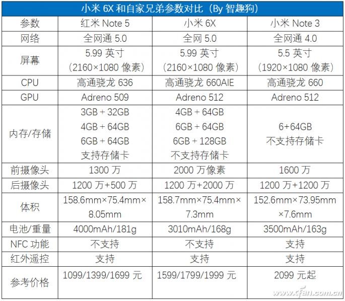 至于小米6X值不值?我们不妨先拿它和自家兄弟比比看。红米Note 5和小米Note 3应该是和小米6X定位相对接近的产品。