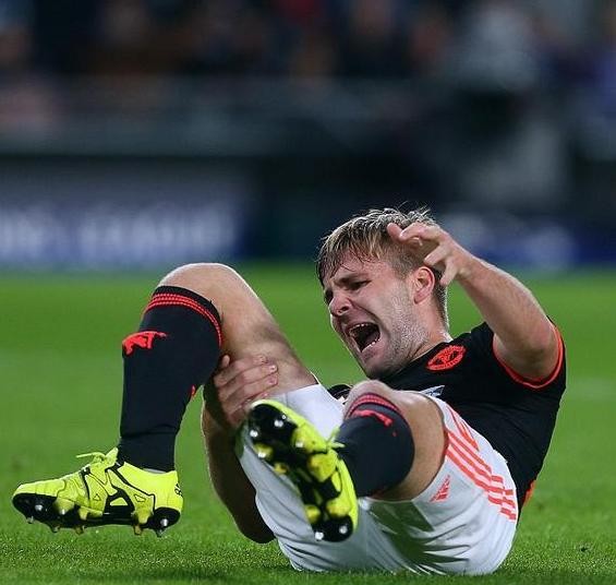 2015年曼联作客菲利普球场面对埃因霍温。远离欧冠赛场一年的的红魔在开场便遭到了重创,左后卫卢克肖在一次碰撞中严重受伤断腿,不得不提前离场!重伤的卢克肖现场吸氧10分钟后被担架抬走!