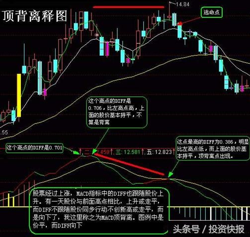 发挥用法就是不看上面价,只看MACD的DIFF的最高点,只要这个新出来的高峰没有前高就算是背离了,一般往下至少有15%的跌幅。