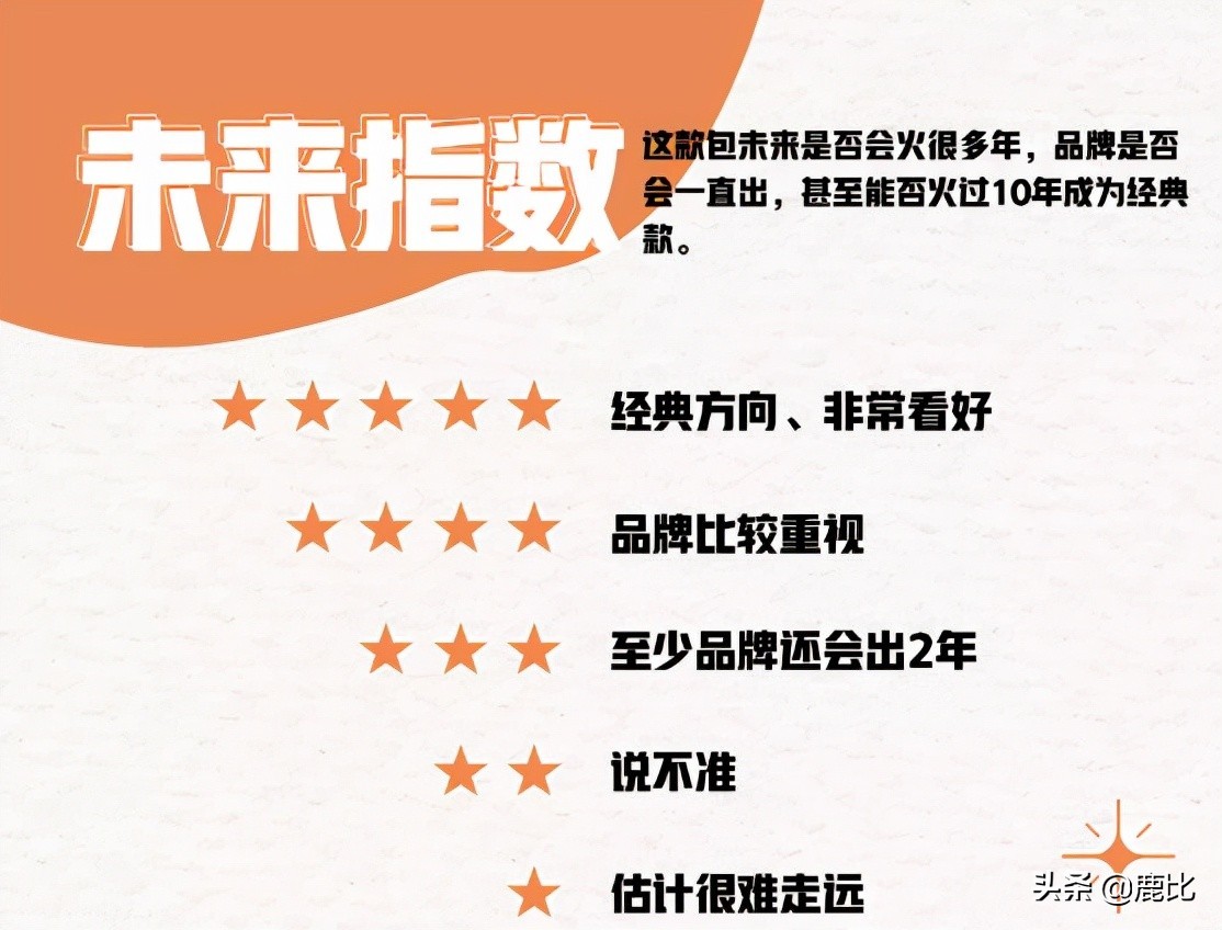未来指数则标志着这款包继续推出、继续火下去的能力,以及这款包成为品牌常青款,甚至经典款的潜力。