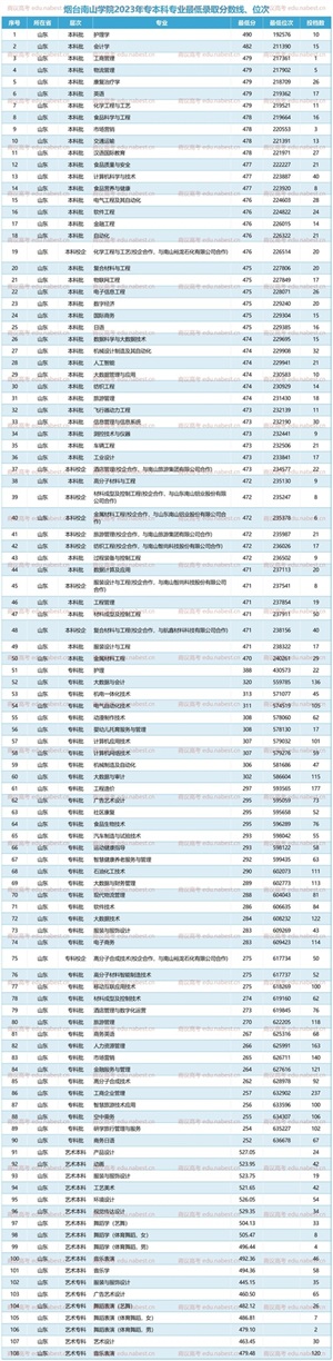 在2023年统招录取中,烟台南山学院普通本科专业最低录取线470分,平均录取线达到475分,同层次大学比高出约5分左右,专科专业录取线则从252分-390分都有,专业热度、优势、招生计划不同,让各专业录取数据同比波动较大。