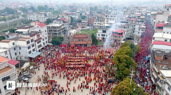 记者获悉,正月初九是清水祖师迎春巡境的首日。当日上午8点多,清水祖师的迎春巡境队伍从鹤前村契母妈宫出发,开始绕镇区巡境。从空中俯瞰,巡境队伍绵延数公里,“春官阵”与“火阵”交相辉映,民间鼓乐队与文艺队参与其中,来自蓬莱本地及慕名而来的海内外上万名信众、香客一路“随香”护驾,虔诚祈祷。队伍所过之处,锣鼓喧天、鞭炮大作、烟花齐放,热闹非凡。