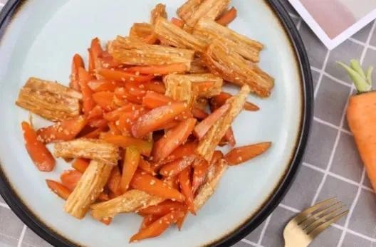 腐竹炒胡萝卜 -材 料-胡萝卜、腐竹油、盐、生抽熟芝麻