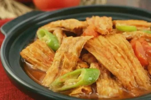 腐竹焖番茄 -材 料-腐竹、番茄、青椒油、盐、生抽