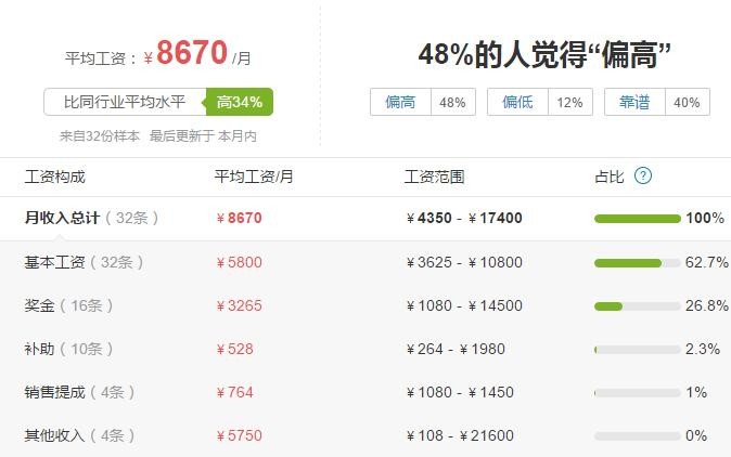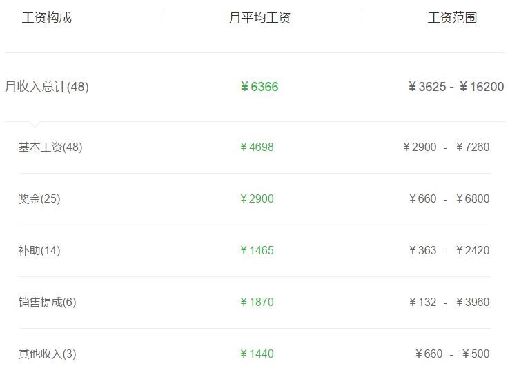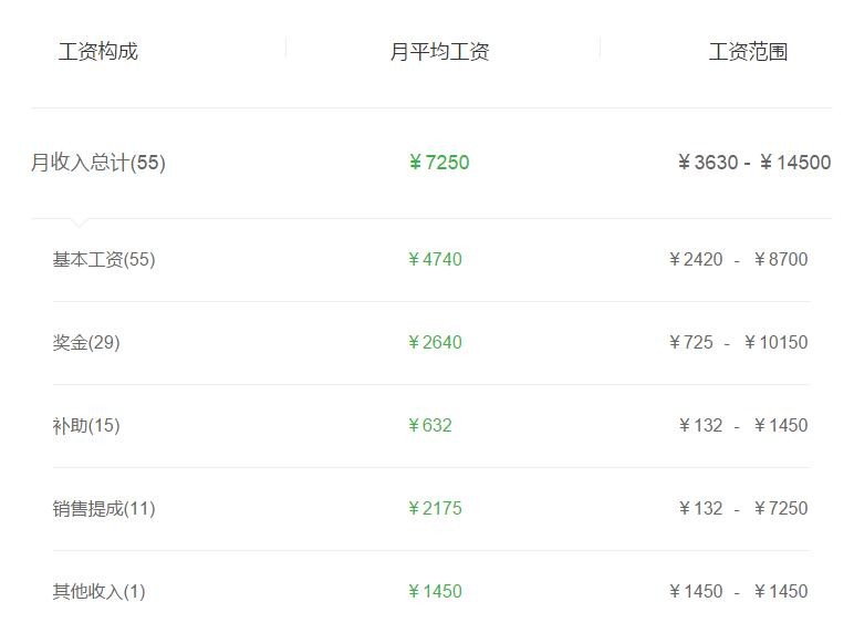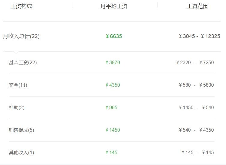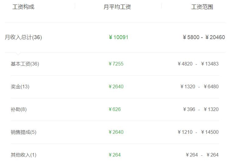 打开详细,其工资构成是这样的,尽管收入范围波动很大,但基本工资和小编了解到的情况也差不多。