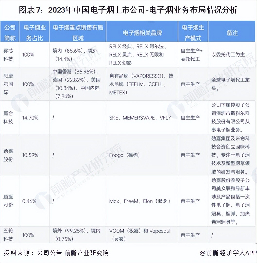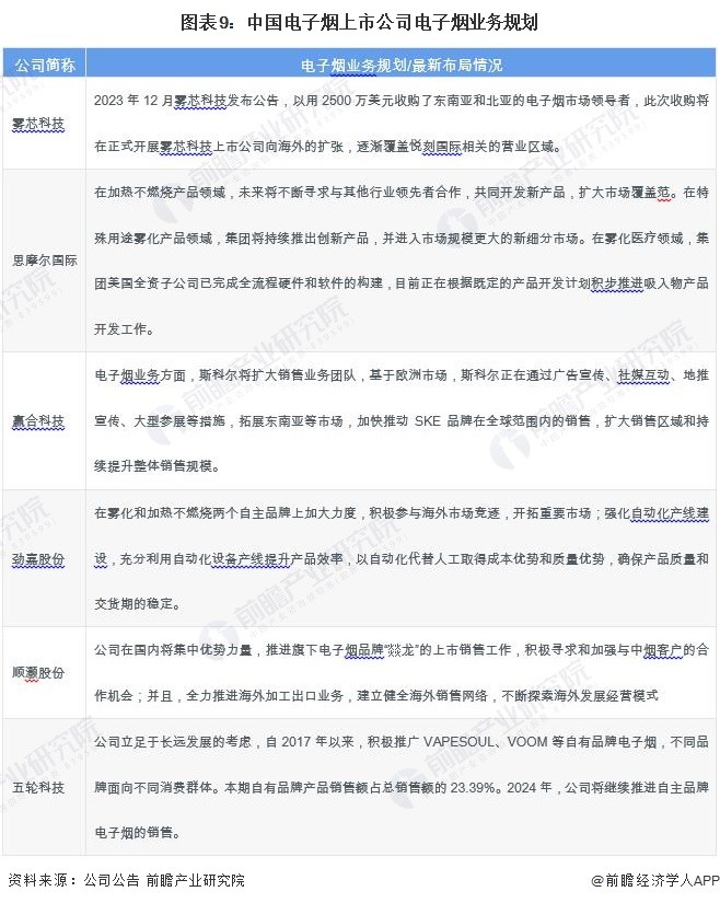 5、中国电子烟行业上市公司业务规划对比