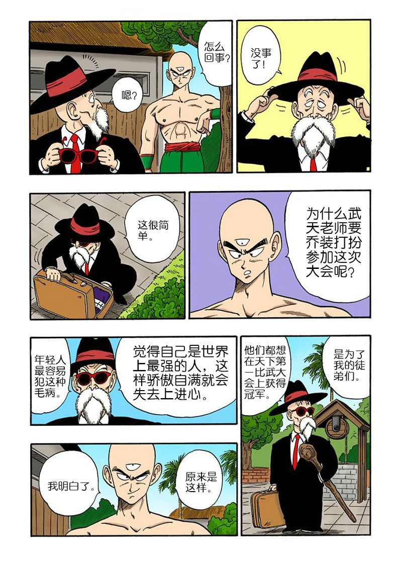 以上是龟仙人的武道理念,当然,如果龟仙人只是武学理念出众而无武德,那他也不能影响悟空的一生,龟仙人是一个既乐见于弟子超越自己又害怕弟子过于骄傲的师父,这才有了他化名程龙参加天下第一武道会,到了22届大会,他在看见弟子已经相当成熟,同时又点破天津饭心中黑暗之后,便欣然退场。