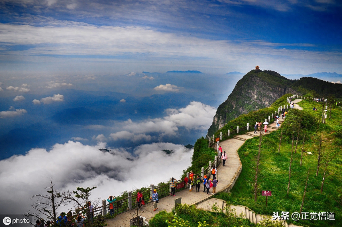 4、峨眉山:位于中国四川省峨嵋山市境内,景区面积154平方公里,最高峰万佛顶海拔3099米,是著名的旅游胜地和佛教名山;是一个集自然风光与佛教文化为一体的中国国家级山岳型风景名胜。1996年12月6日列入《世界自然与文化遗产名录》。相传佛教于公元1世纪即传入峨嵋山。