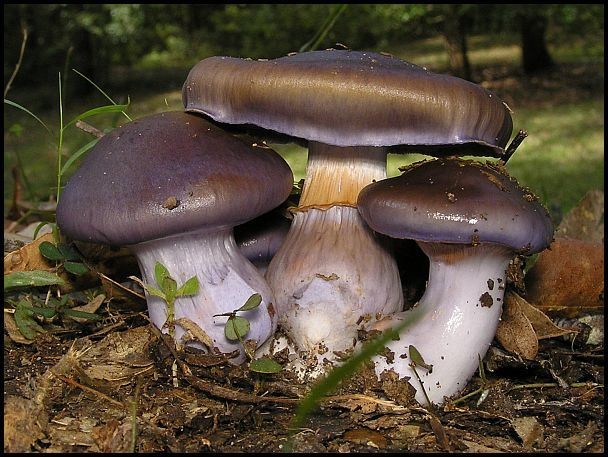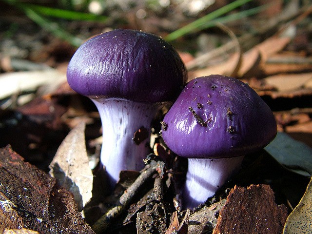 学名Cortinarius archeri,发现于澳大利亚,颜色鲜艳的菌盖最初是深紫色或紫色,但随着年龄的增长会变成棕色。