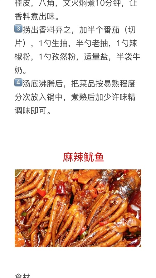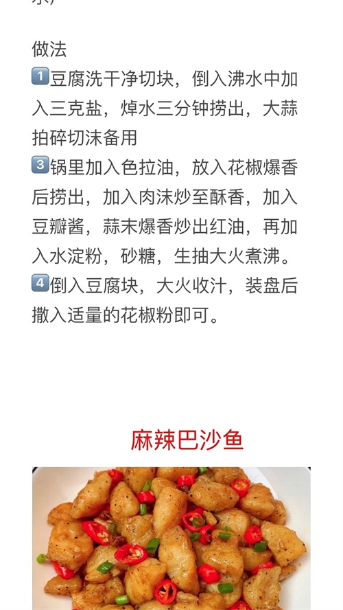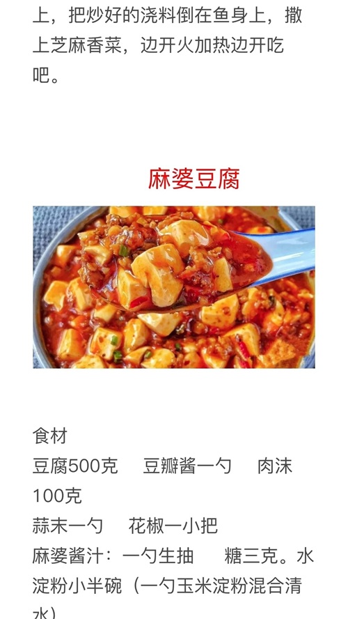 麻婆豆腐、麻辣巴沙鱼、减肥麻辣烫、麻辣鱿鱼的做法教程及配料