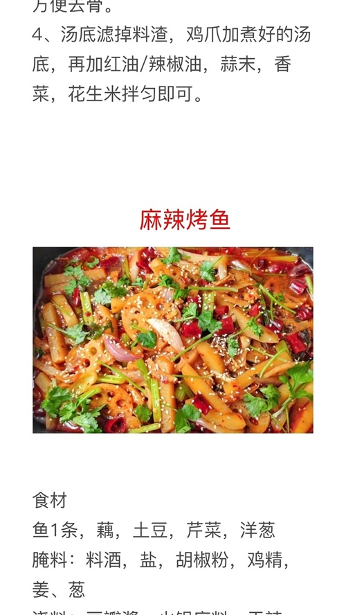 麻辣牙签肉、麻辣麻椒鸡、麻辣红油无骨鸡爪、麻辣烤鱼、
