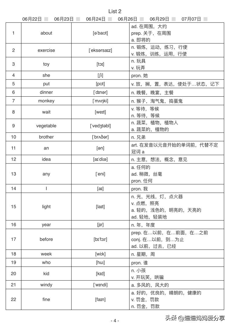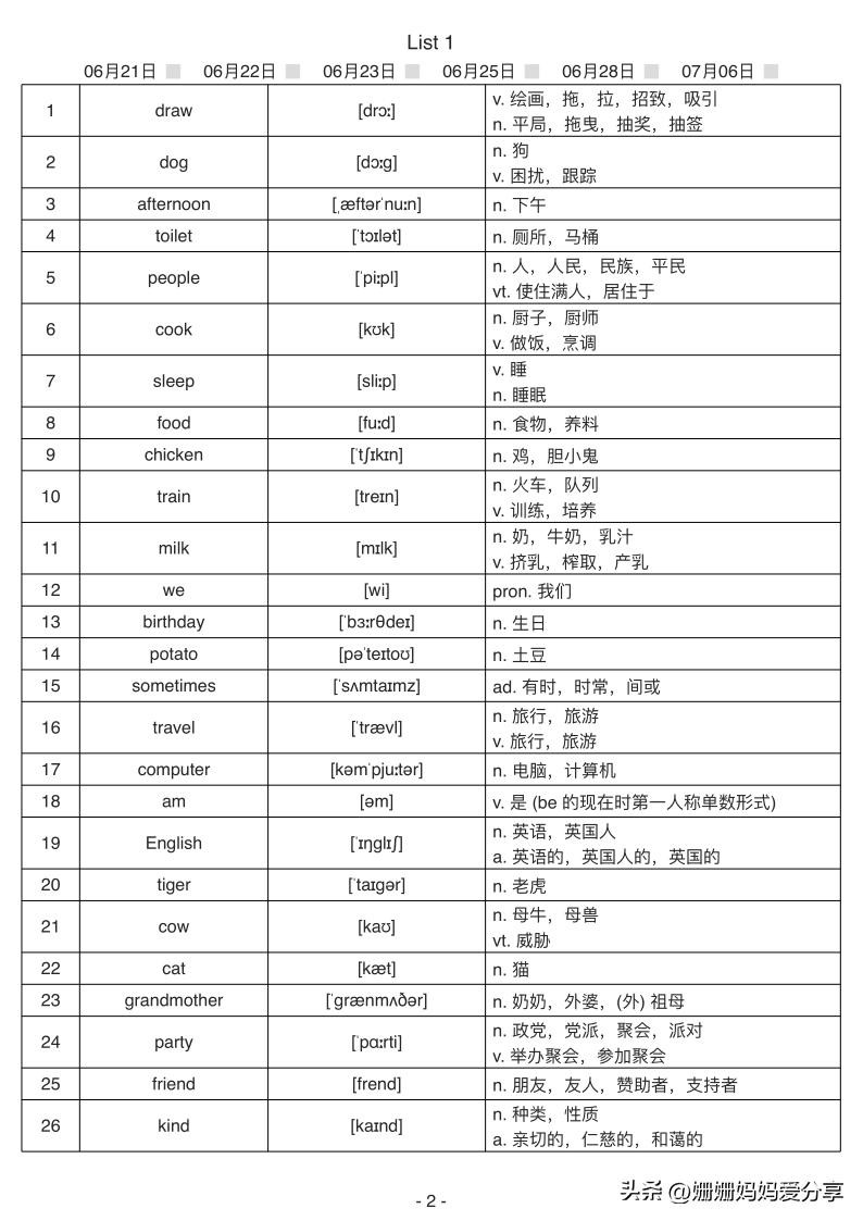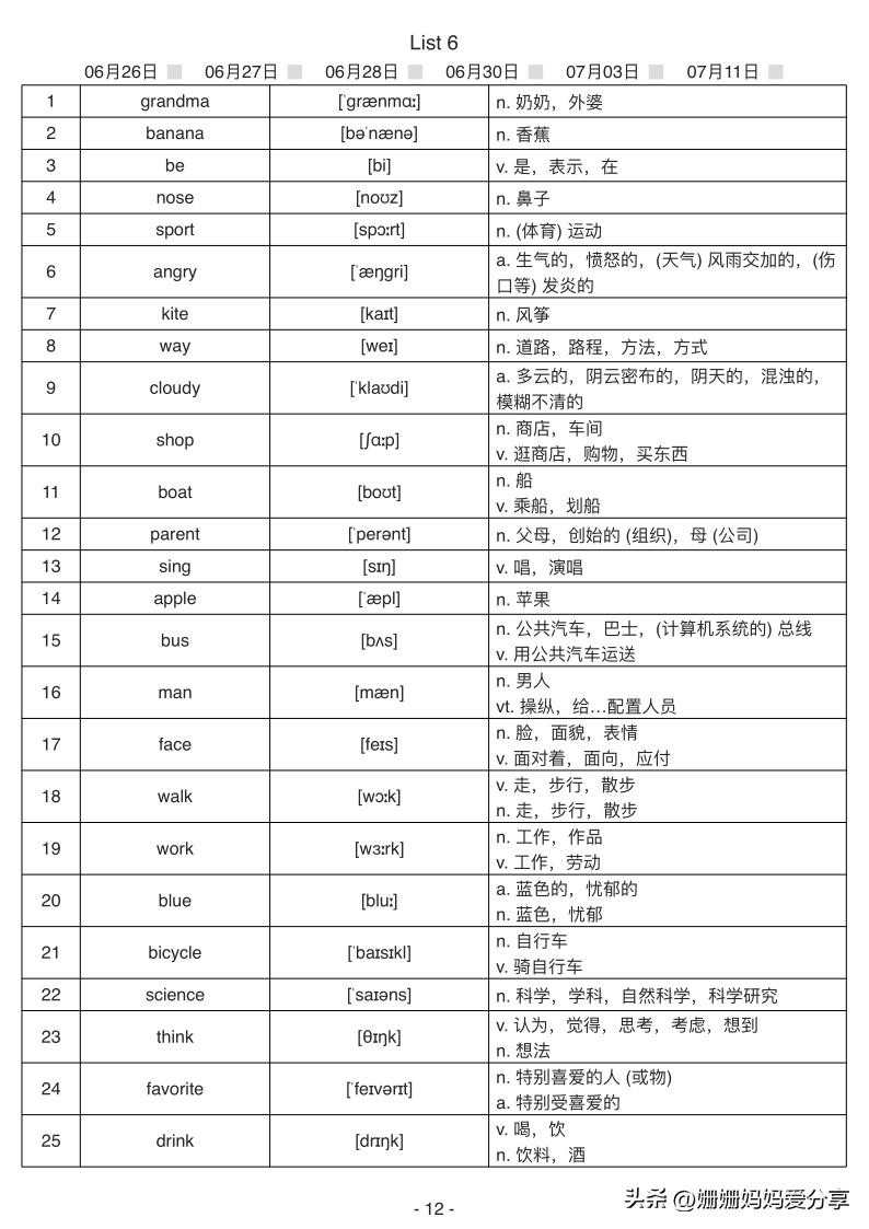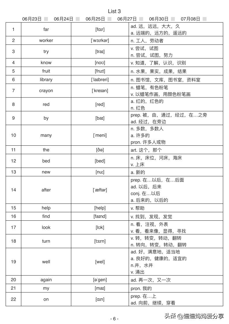 小学全部词汇艾宾浩斯记忆法复习计划表背单词