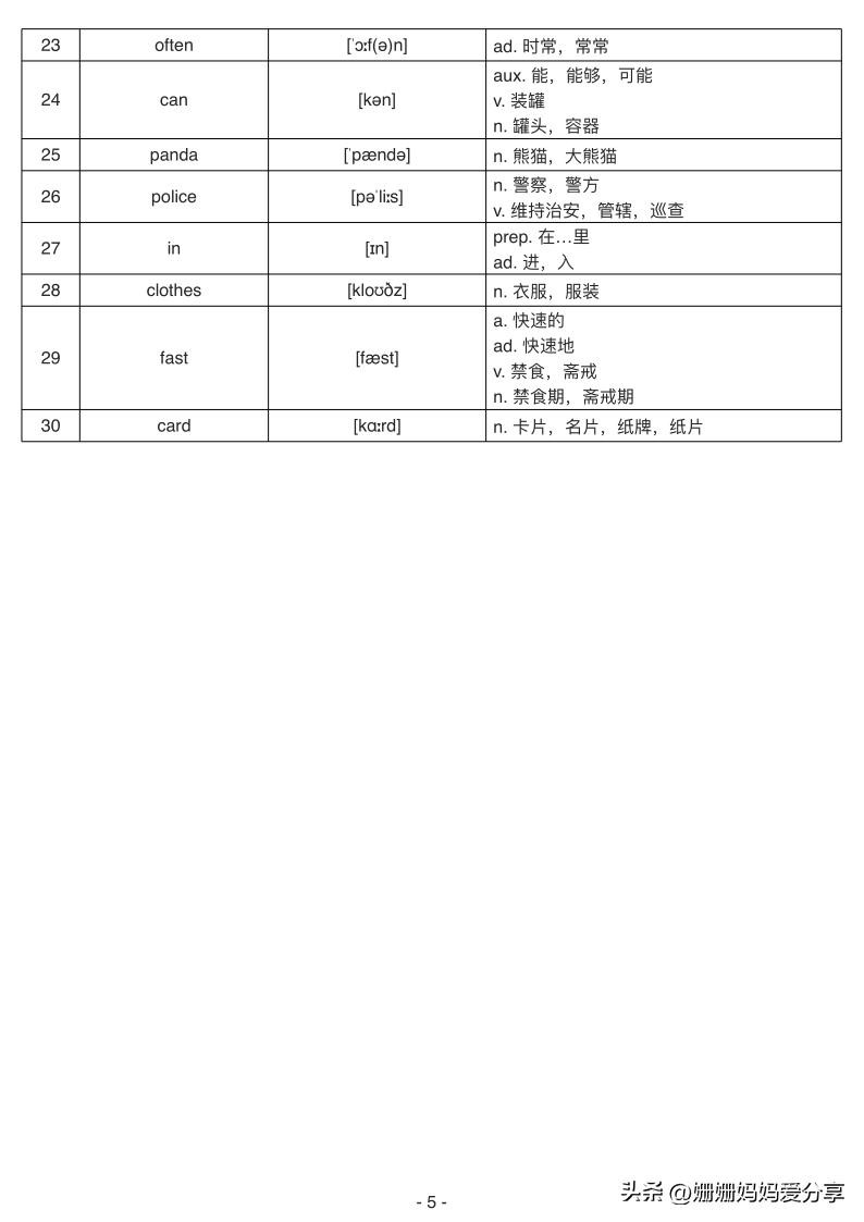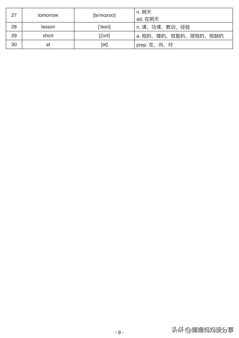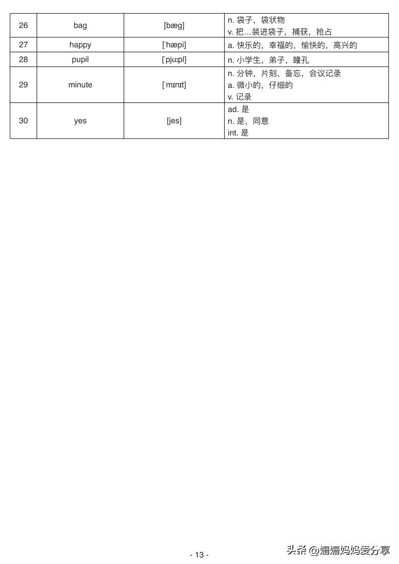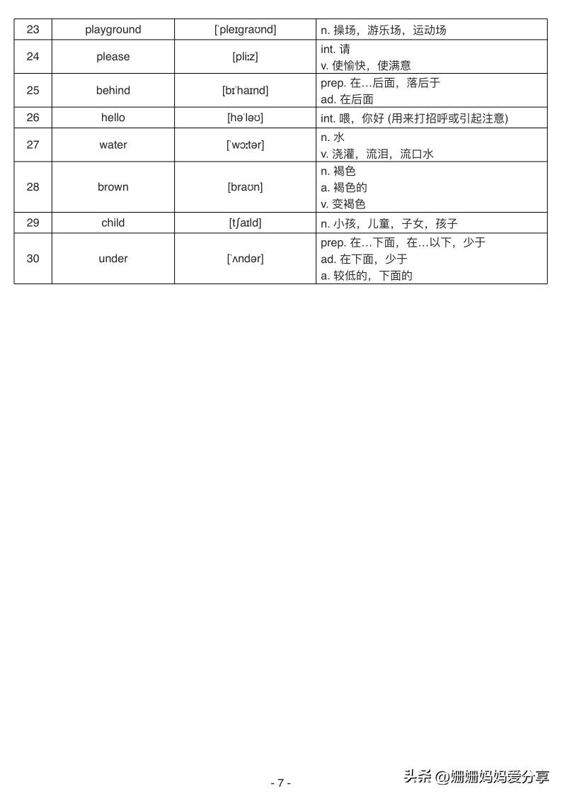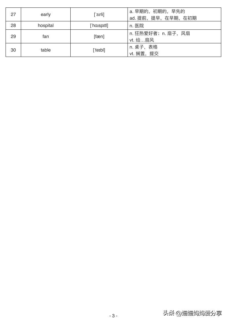 小学全部词汇艾宾浩斯记忆法复习计划表背单词30页