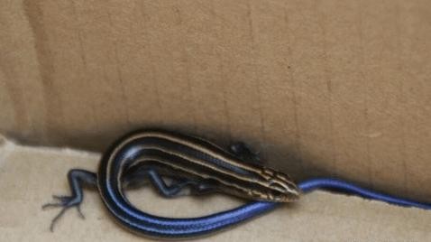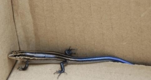 市民发现蓝色蜥蜴上交国家 系蓝尾石龙子幼体尾部蓝色