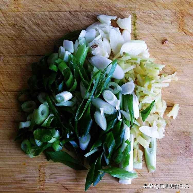 3、把葱,蒜切碎备用